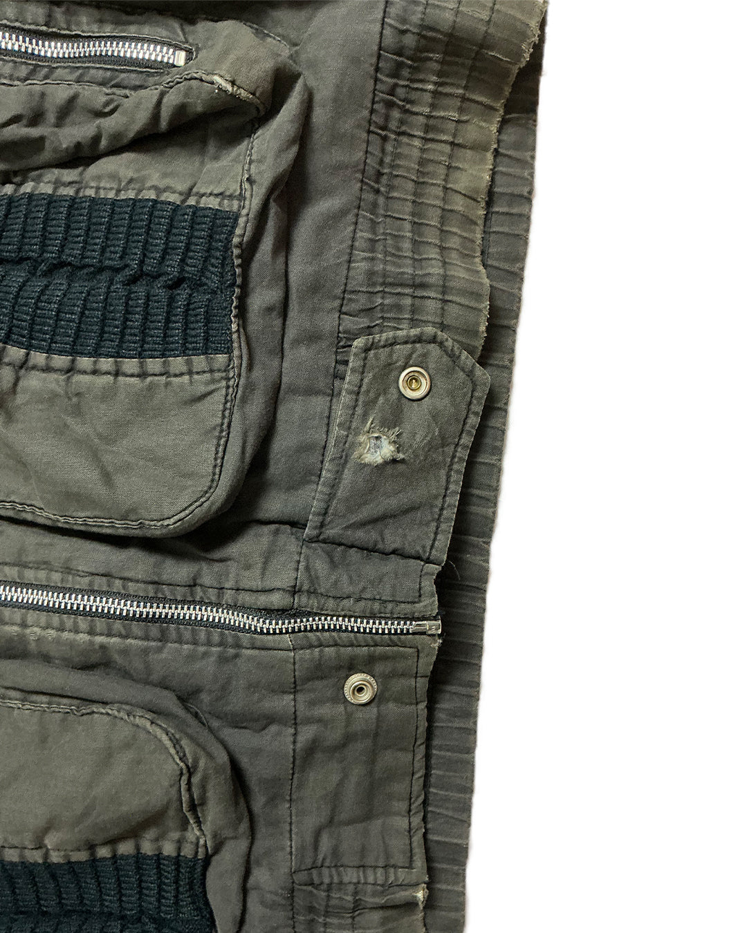 Vintage distressed NPC bomber jacket in khaki/navy. Featuring high button up drawstring neck and oversized pockets. Fits XL