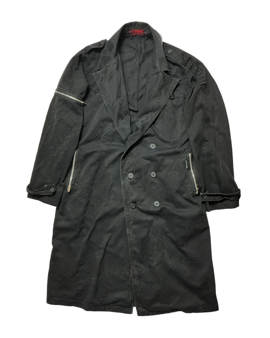 Vintage black Tripp NCY trench coat. Button closure, featuring zip and military style detailing on front and back. Fits L